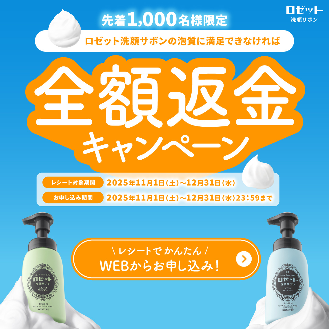 ロゼット「先着1,000名限定ロゼット洗顔サボンの泡質に満足できなければ全額返金キャンペーン」