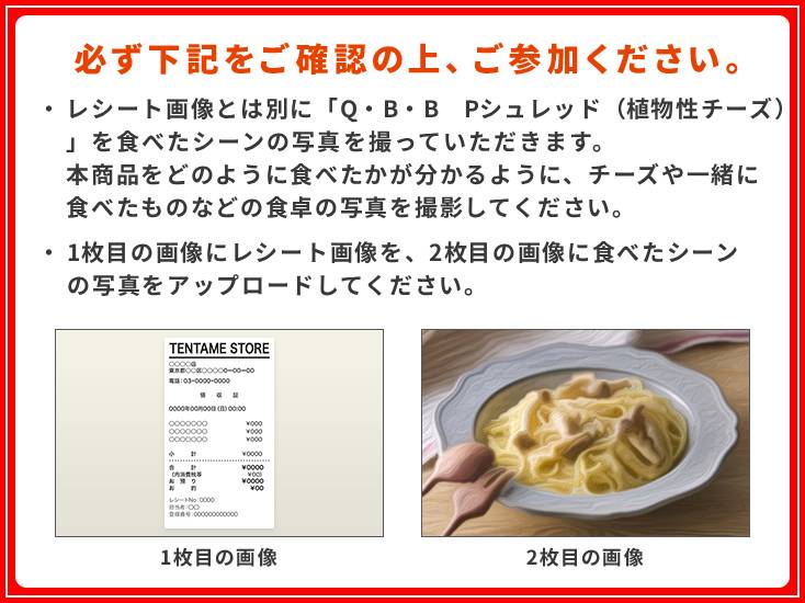 ・今回の対象商品は「Q・B・B Pシュレッド(植物性チーズ)」です。2種類のうち、どの種類をご購入いただいてもポイントは一律です。
