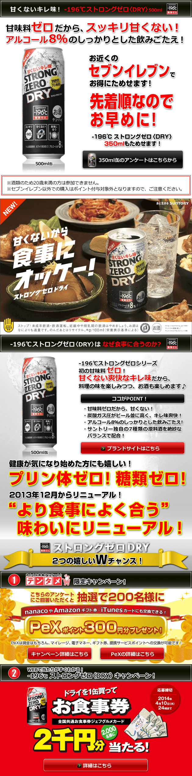 - 「-196℃ ストロングゼロ〈DRY〉500ml」以外のストロングゼロシリーズ商品をご購入いただいても、ポイント付与対象外となります。何卒ご了承ください。